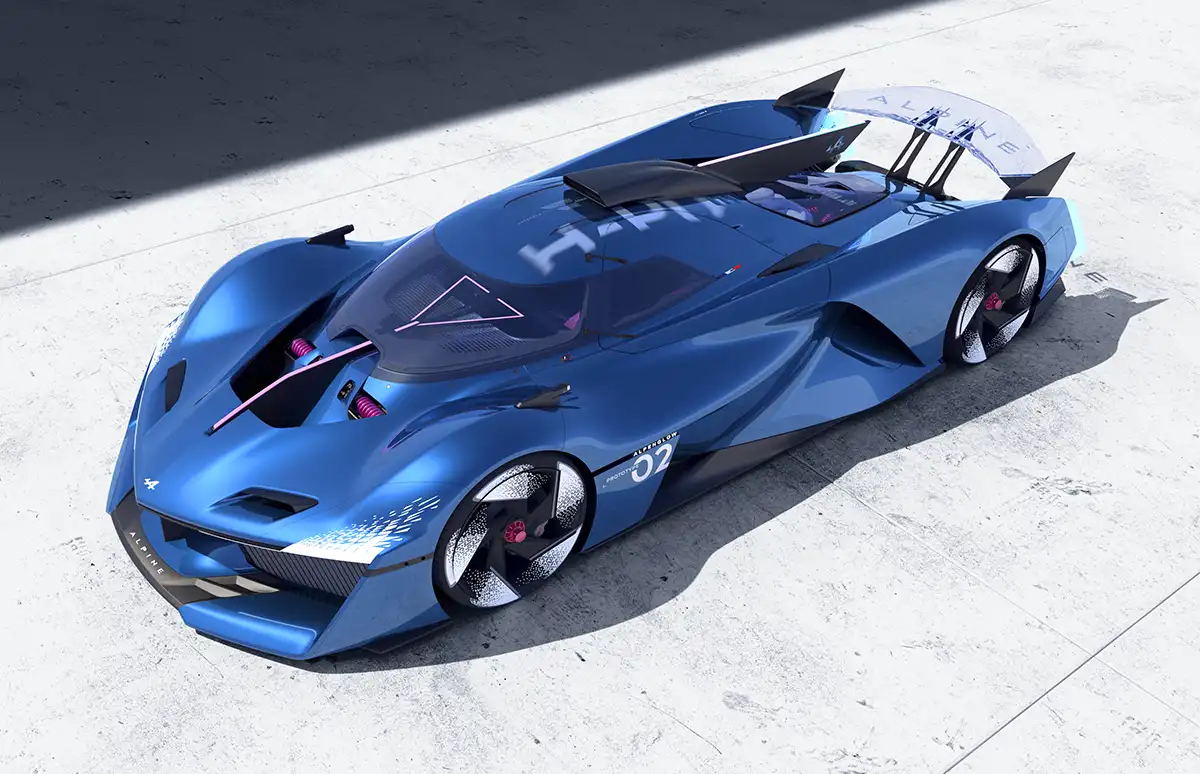 Alpenglow Hy6 del brand performance del Gruppo Renault “incarna perfettamente la sintesi tra meccanica ed estetica, grazie al cofano posteriore trasparente che valorizza la tecnologia presente in questo veicolo. Tenendo fede alla filosofia di Alpine, vengono esaltate le prodezze tecniche e l’ingegneria attraverso un design raffinato.”